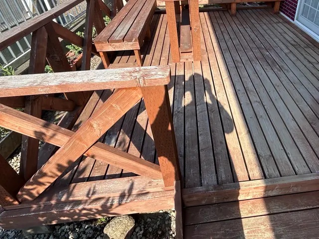 ウッドデッキがボロボロになってきて、踏み外したら危ないので長持ちするよう塗装してほしいとご相談がありました。