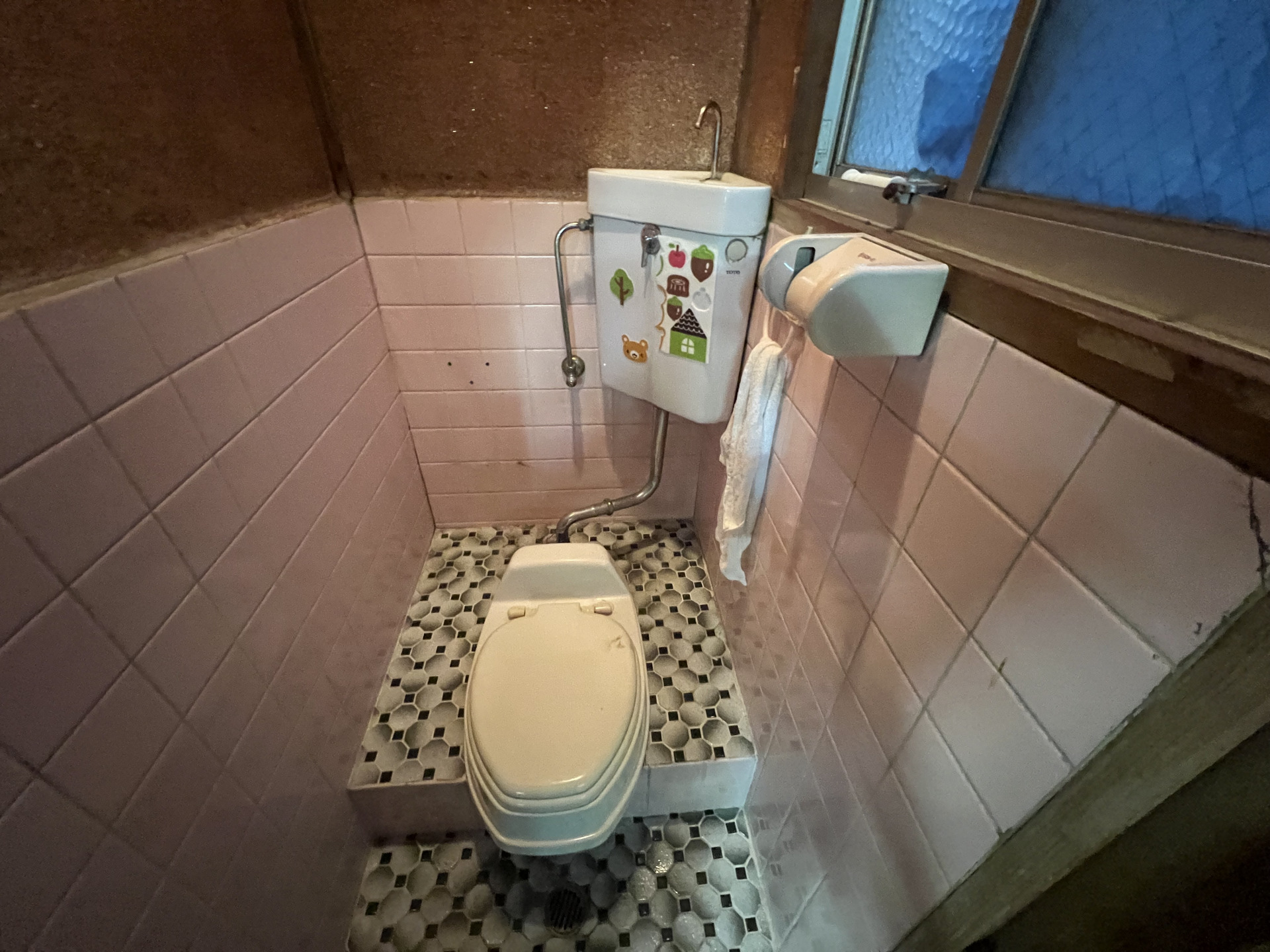 タイルの床と壁を撤去し、クッションフロア床とクロス貼の壁、洋風便器に変更