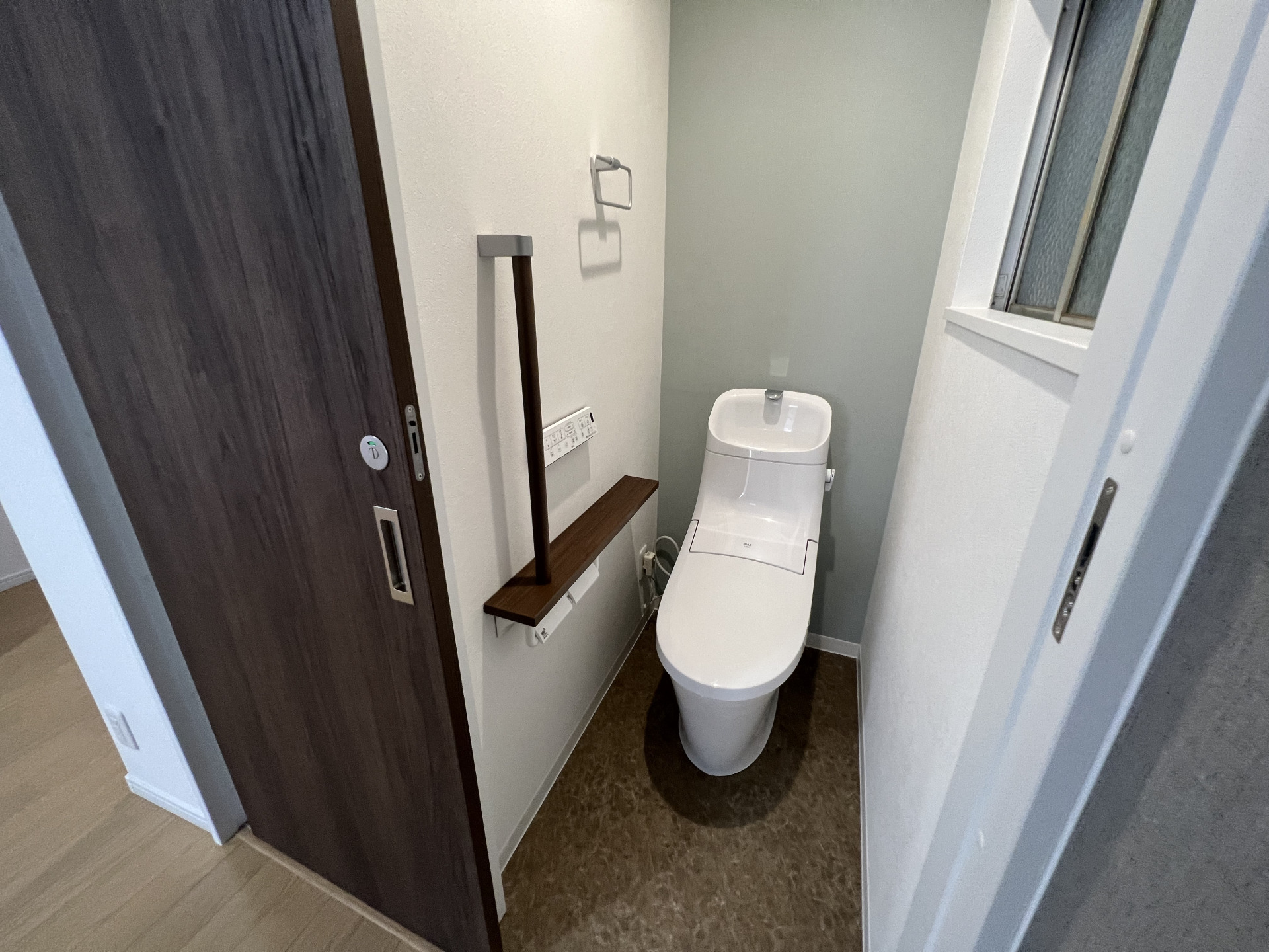 水廻りも新調、トイレ・洗面・洗濯機も寝室に隣接し、安心安全にして生活できるお住まいになりました。店舗用サッシは玄関になり、外観もスタイリッシュに生まれ変わりました。