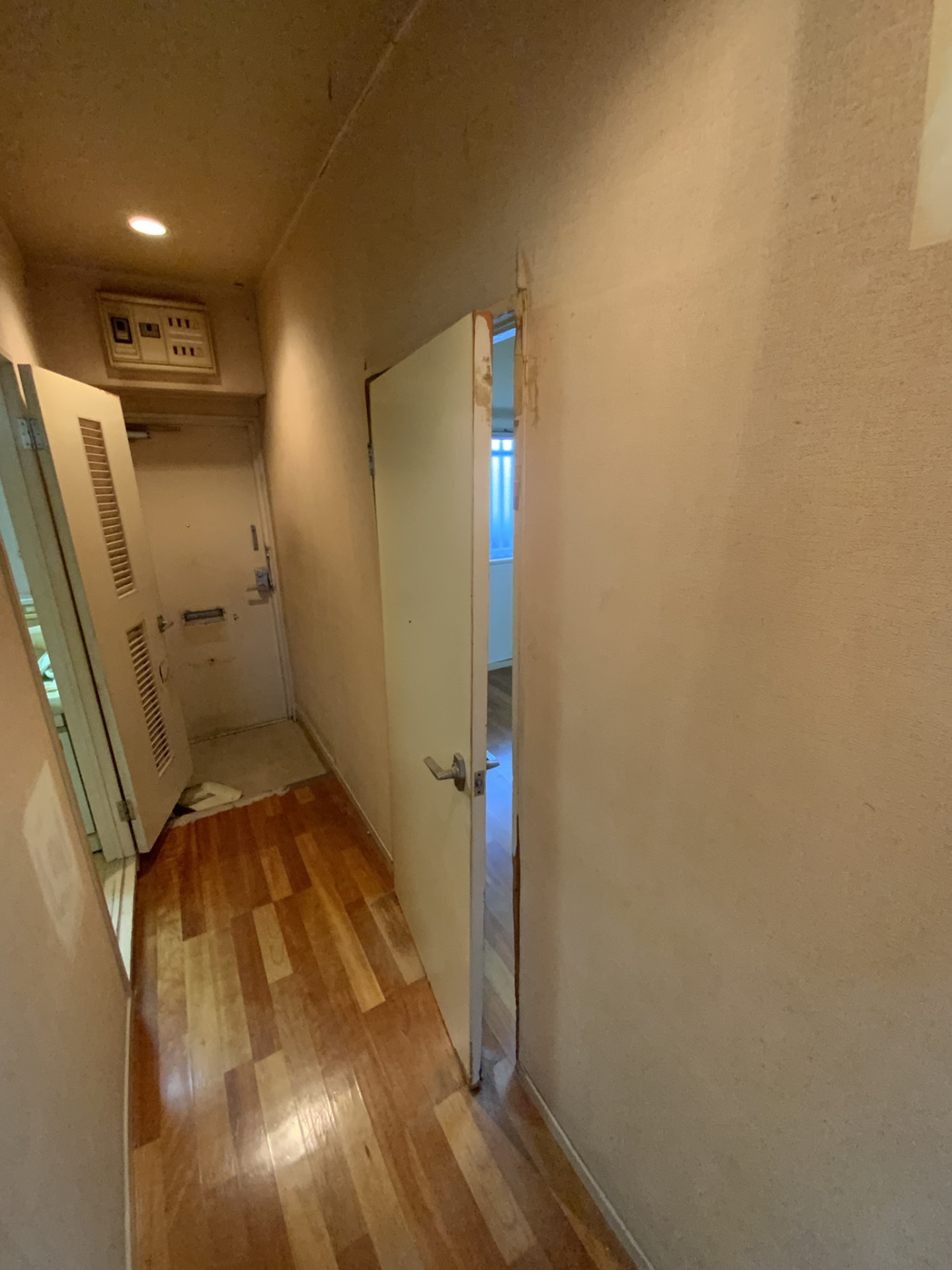 現地確認のうえ、部分補修ではなく“空間全体のバランスを整える”施工をご提案しました。 ① 壁クロス全面張替え 一部補修では色差が出やすいため、統一感を重視して全面張替え。 ② 扉交換・建具調整 傷みの大きい扉は交換し、使用可能な建具は丁寧に調整。 ③ 畳の表替え 畳床は再利用し、表替えで美観と機能を回復。 コストを抑えつつ、印象を大きく改善する内容としました。