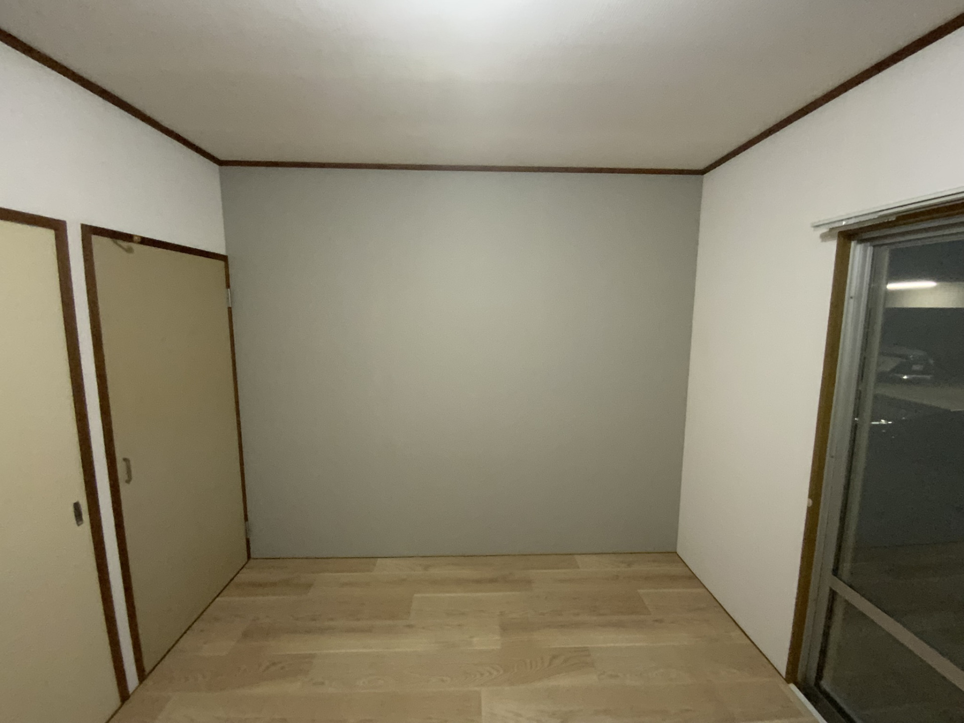 ・下地処理の丁寧さ ヤニ汚れや凹凸をしっかり補修し、クロス貼付時にムラや浮きが出ないよう徹底。 ・アクセントクロスの納まり 壁のラインや光の入り方を考慮し、自然で違和感のないアクセント貼りを実施。 ・色味・質感の統一 全体クロスとアクセントクロスのバランスを調整し、明るく統一感のある室内に。