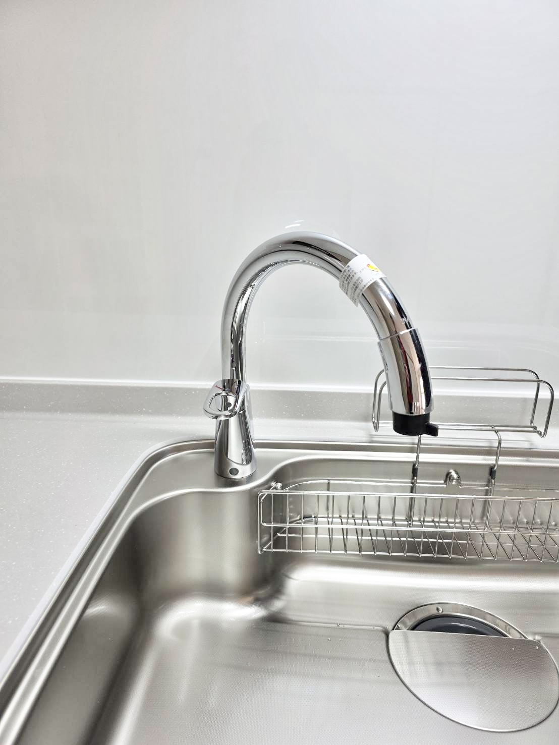 吐水口が高く、手元のスペースが広いので、作業がしやすく鍋やフライパンが洗いやすいのがポイントです。