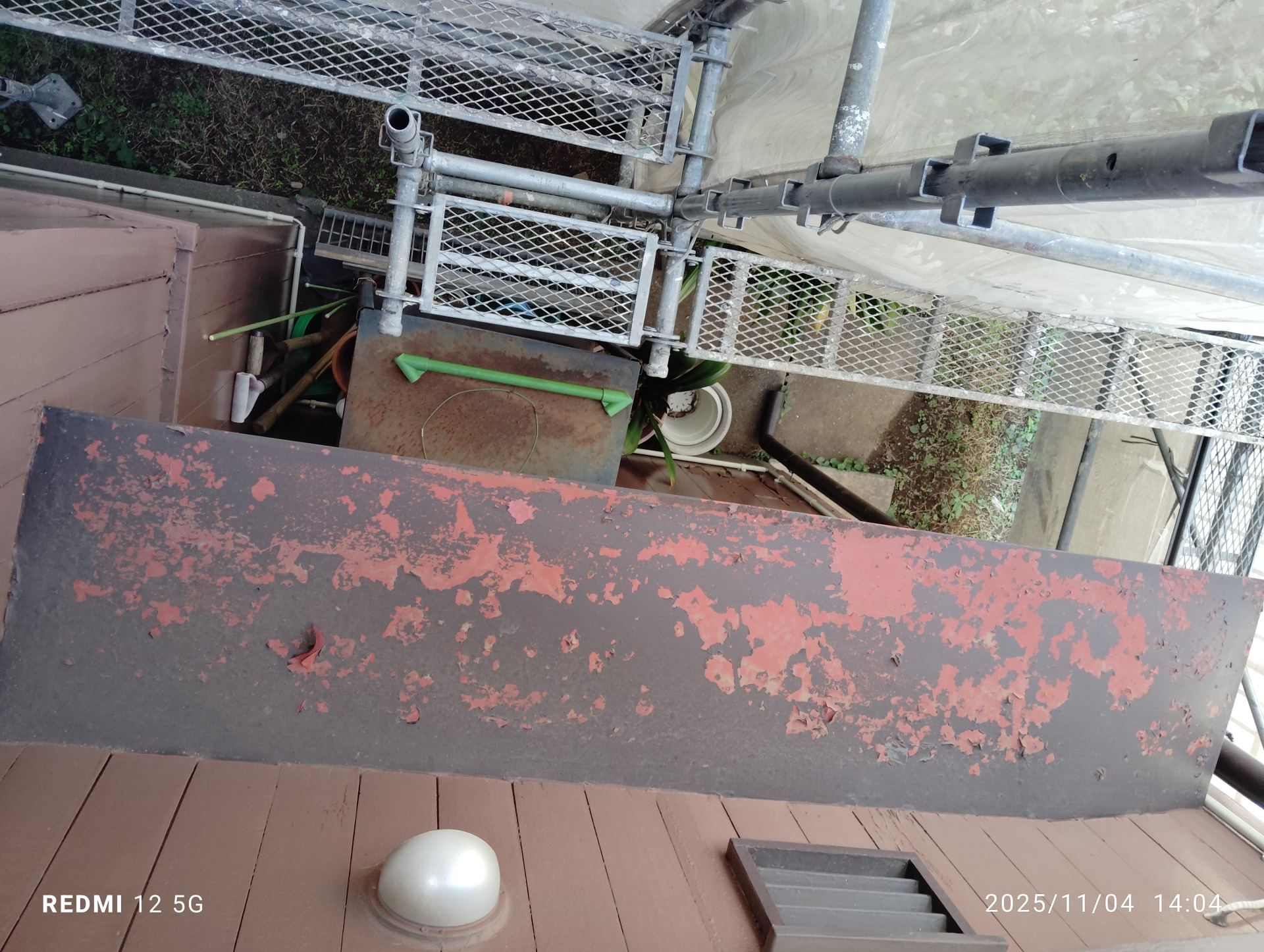 木部の腐りの箇所(倉庫の柱、軒天、壁面下の雨がかり部分)の補修 壁面の塗膜の剥離 トタン部の経年劣化 上記内容を踏まえ綺麗にして欲しいとのこと。