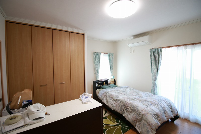 床をフローリングに変え、ベッドの配置を考えて間取りを変更したため、空間を最大限活用できるようになりました。押入れ収納は、奥行きの浅いクローゼットに変更し、洋服の出し入れもしやすくなり、部屋全体がスッキリ片付きました。