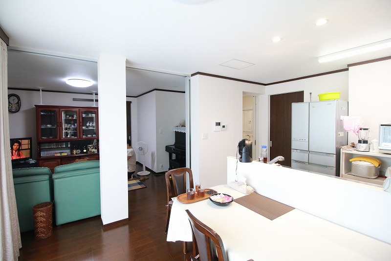 部屋を区切っていた壁をなくし、ひろびろと開放的な空間になりました。リビングとダイニングの間には、用途に合わせて空間を間仕切ることができるスライディングウォールを採用しました。