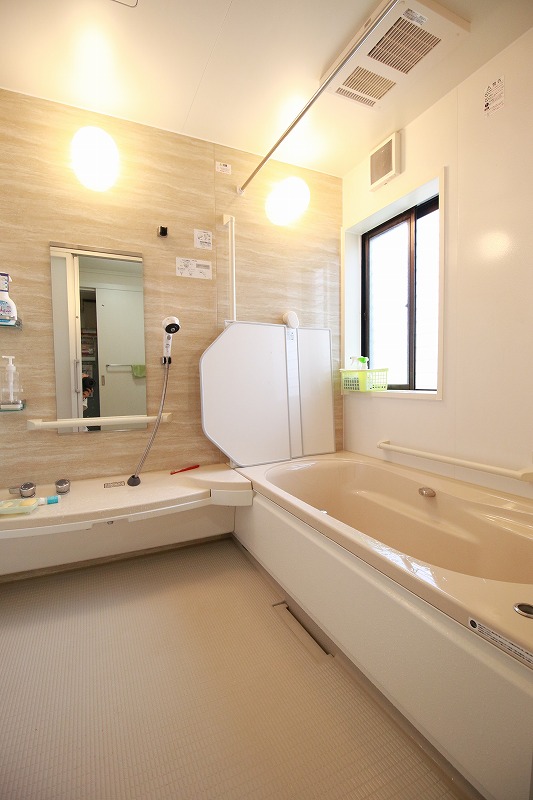 ご主人念願のひろびろお風呂!手すりや腰掛けられるスペースもあるので、歳をとっても安心です!