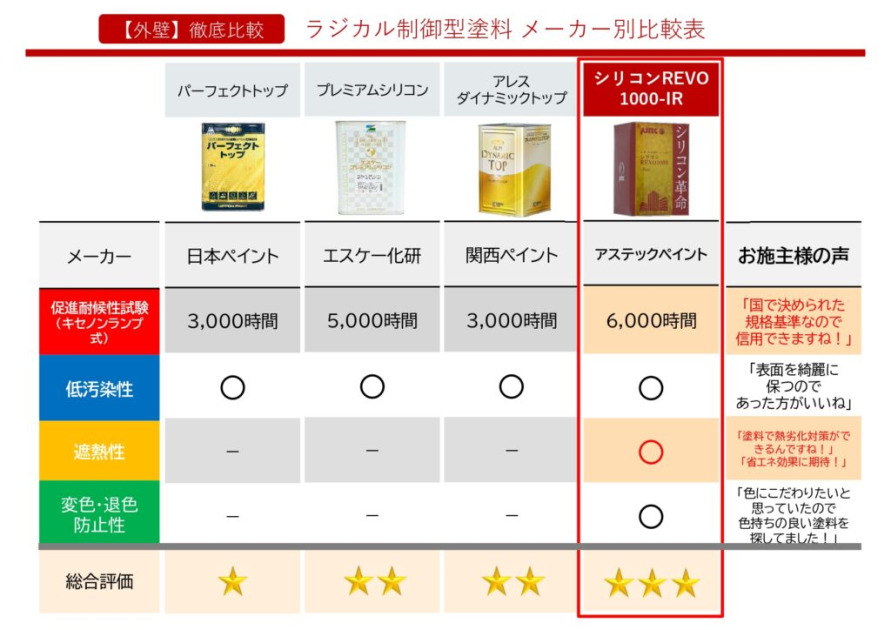 例えば、遮熱塗料で国内トップシェアを誇るアステックペイントのような、時代のニーズに合った新しい塗料についても丁寧に説明を行っています。
