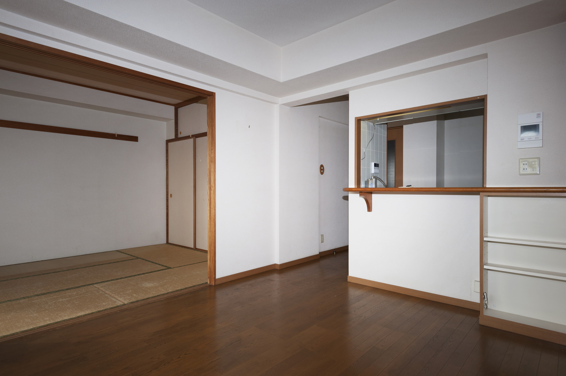 隣接する和室の影響で圧迫感があったリビングは、壁を取り壊して開放感のある広々としたリビングをご提案しました。