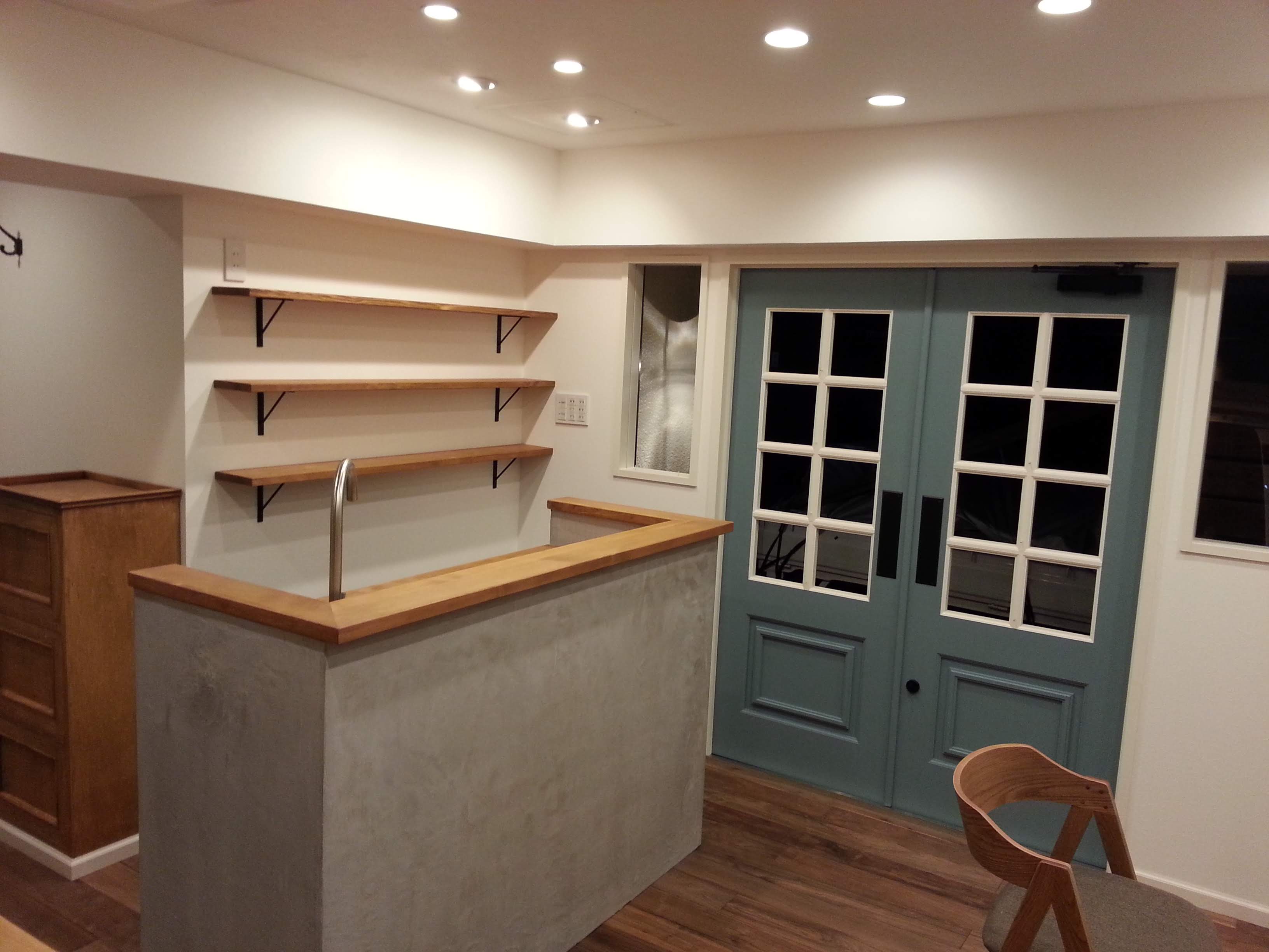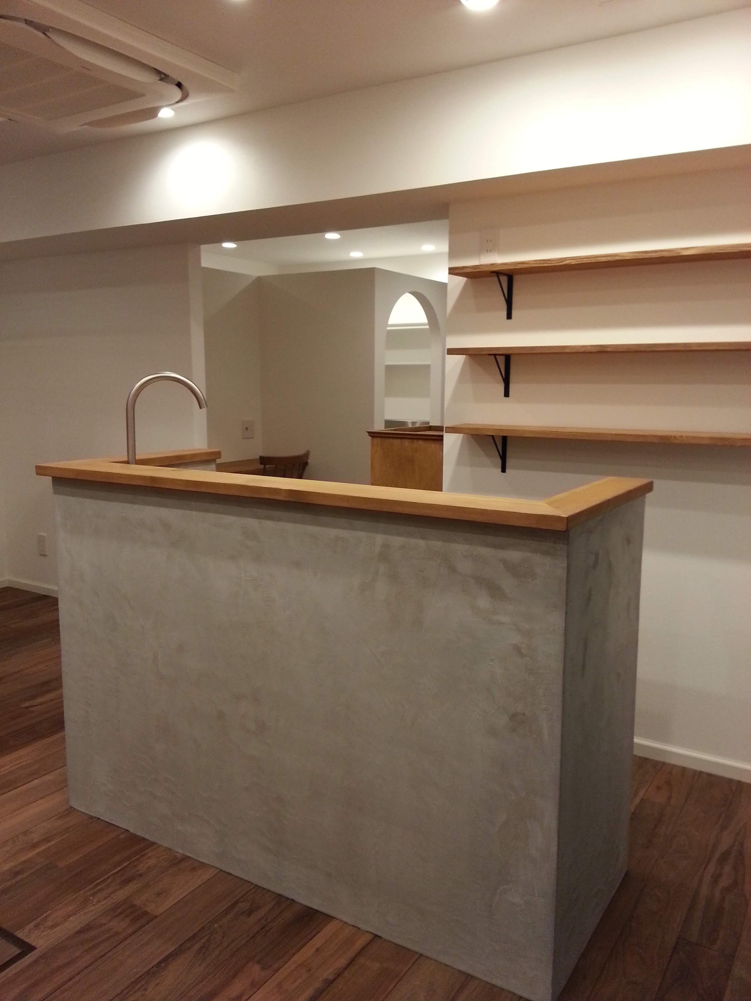 木のぬくもりとモールテックスの無機質なかっこ良さが素敵な空間