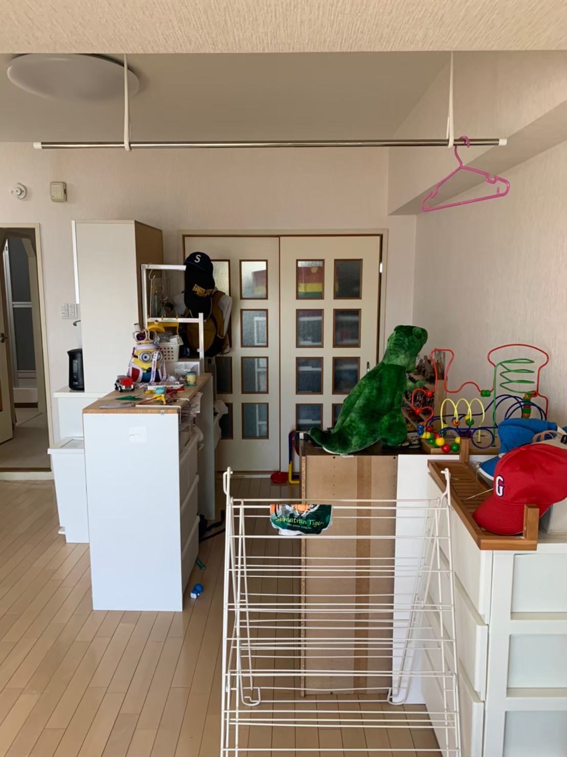 家全体の床・クロス張替え・建具交換と同時にリビングの一角に収納力がある和室スペースを作りたいとのご希望でした。また全体的に収納スペースも少ないのでこちらもお困りでした。