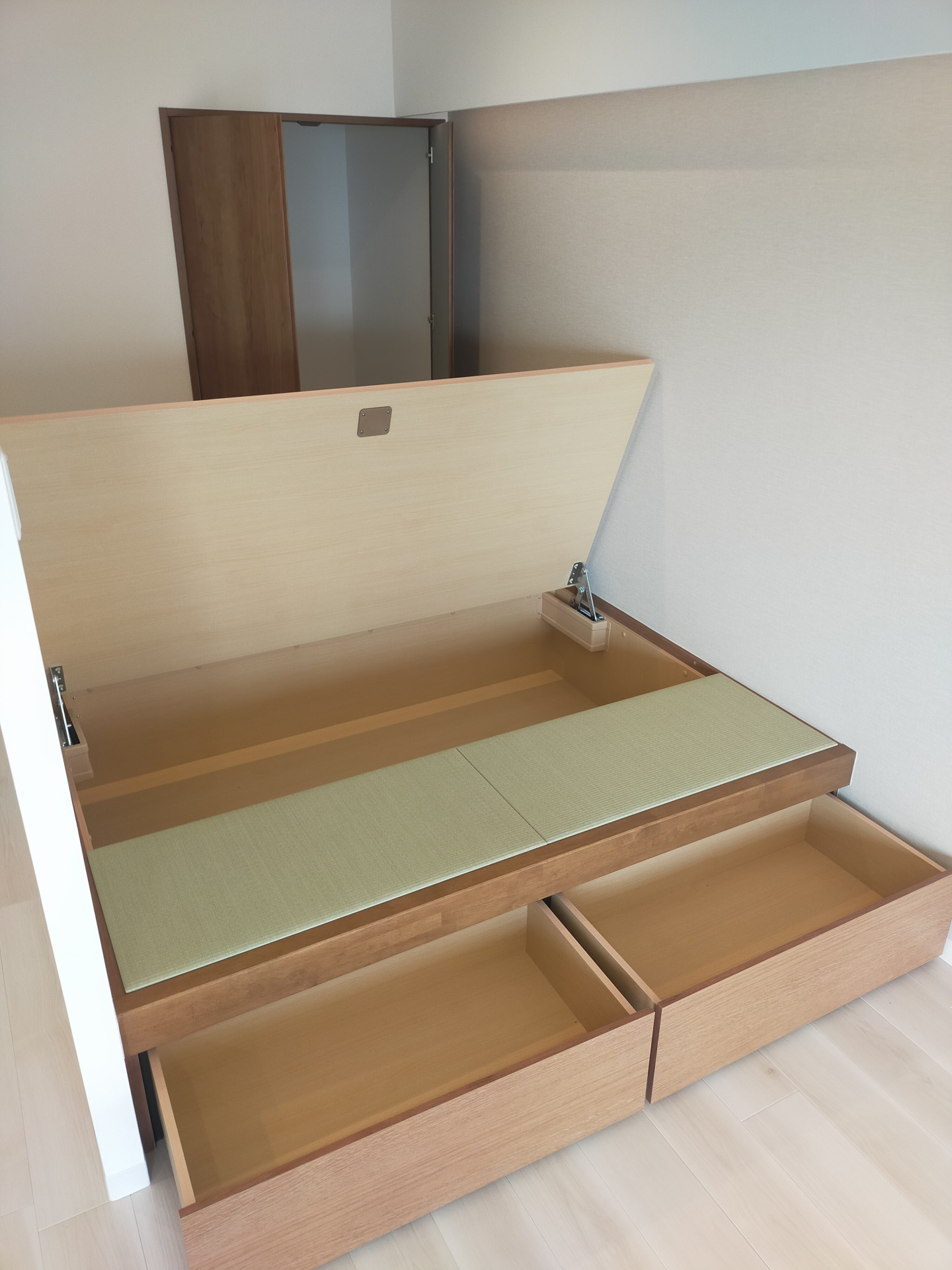 奥の開き戸には普段使いの布団が収納できるようになっています。