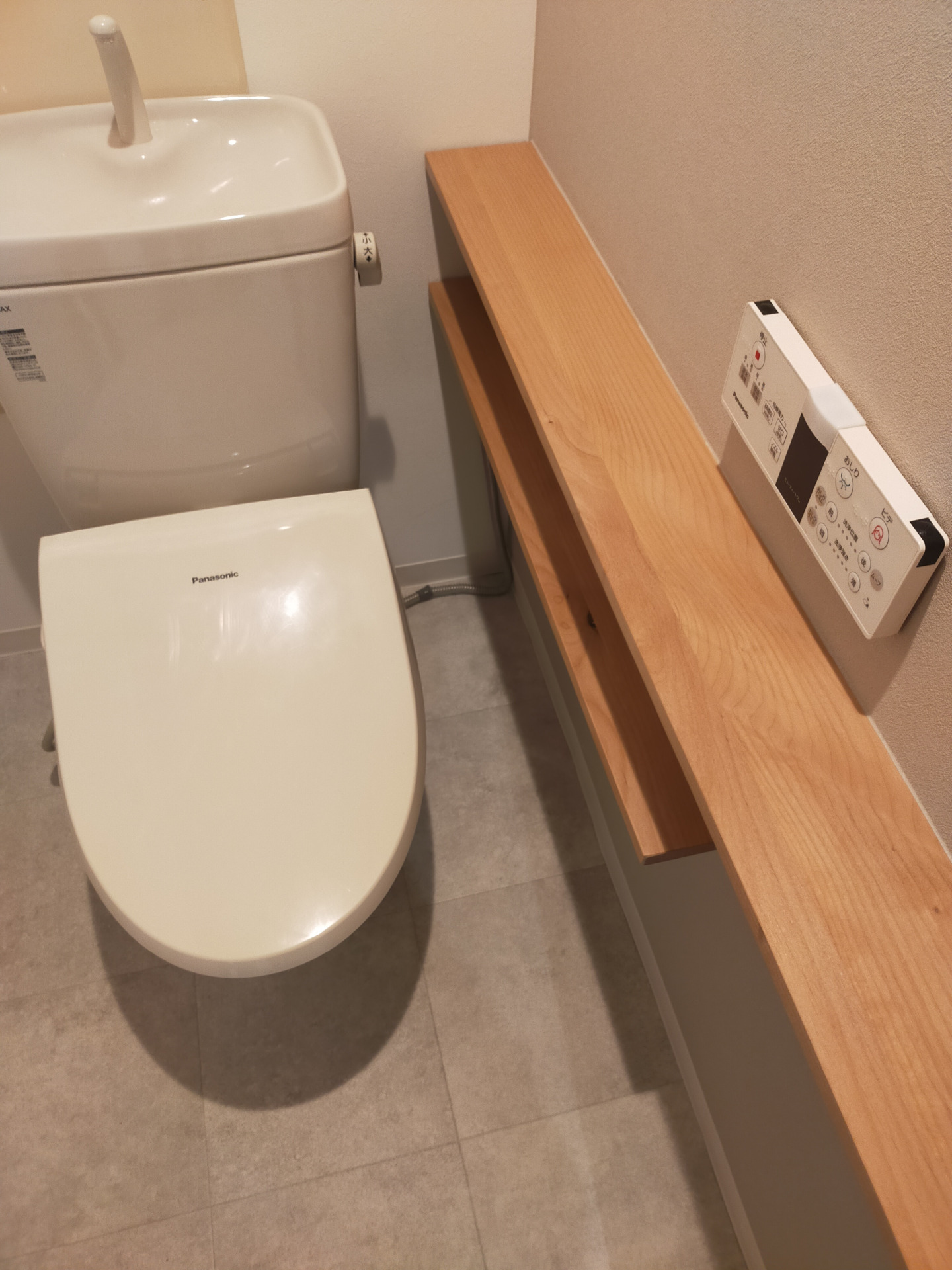 トイレの設備交換は行っておりませんが、棚を付けてほしいという事でご希望の棚のイメージを画像にて確認させていただき、造作いたしました。