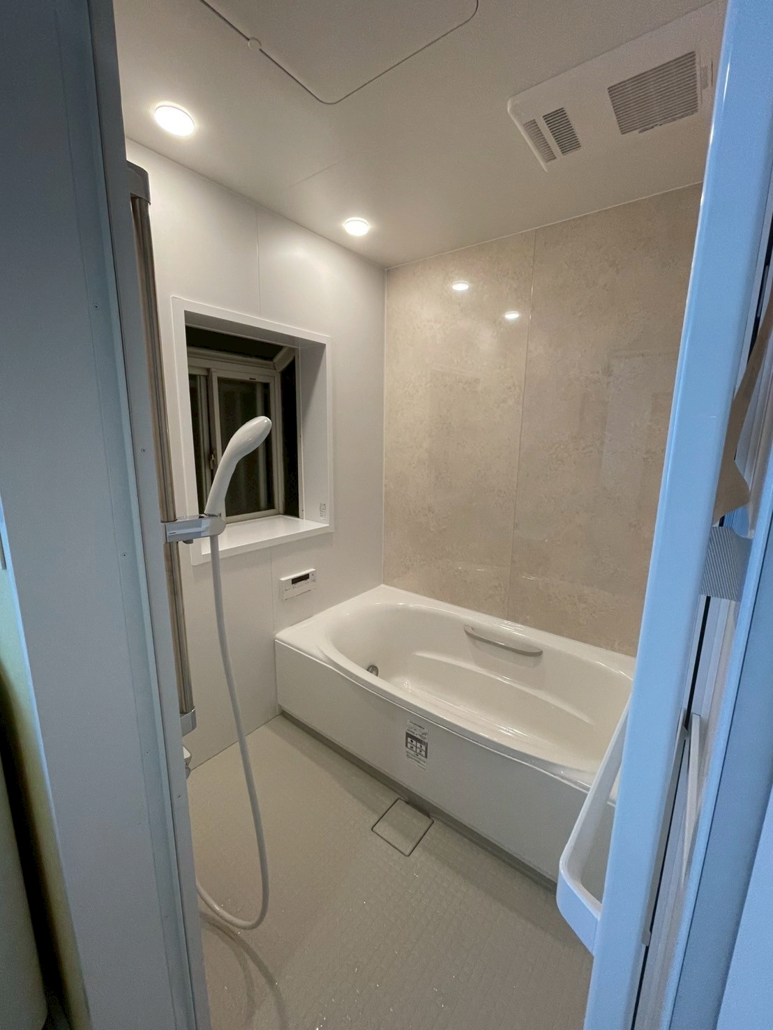 浴槽の位置を変更することで出窓の開閉を行いやすくしました。 窓には内窓を取り付けましたので、冬の浴室の寒さを軽減できることでしょう。 LIXIL リデア