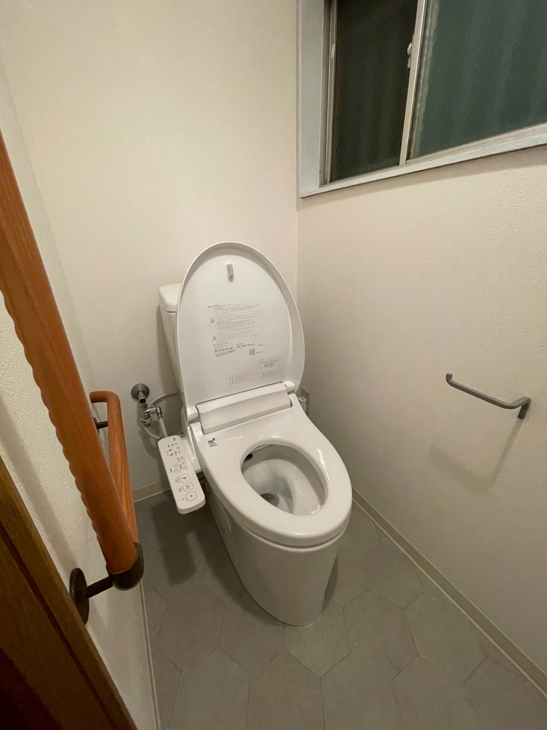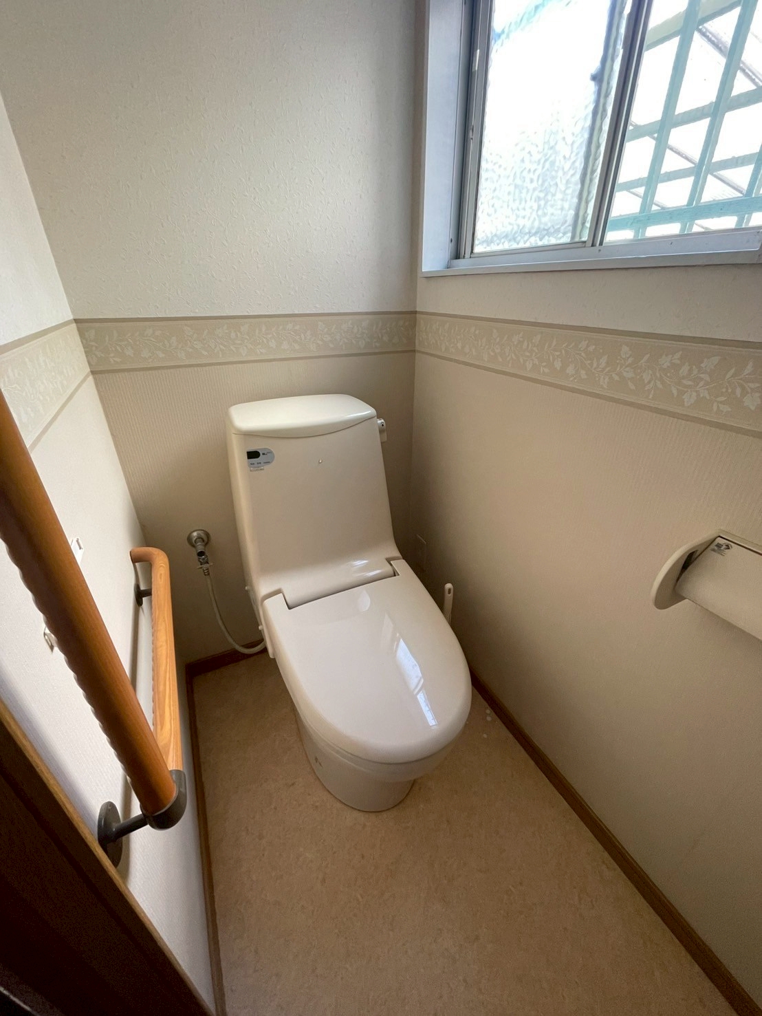 グレーを基調としたペーパーホルダー、クッションフロアでスタイリッシュなトイレ空間になりました。 LIXIL アメージュ