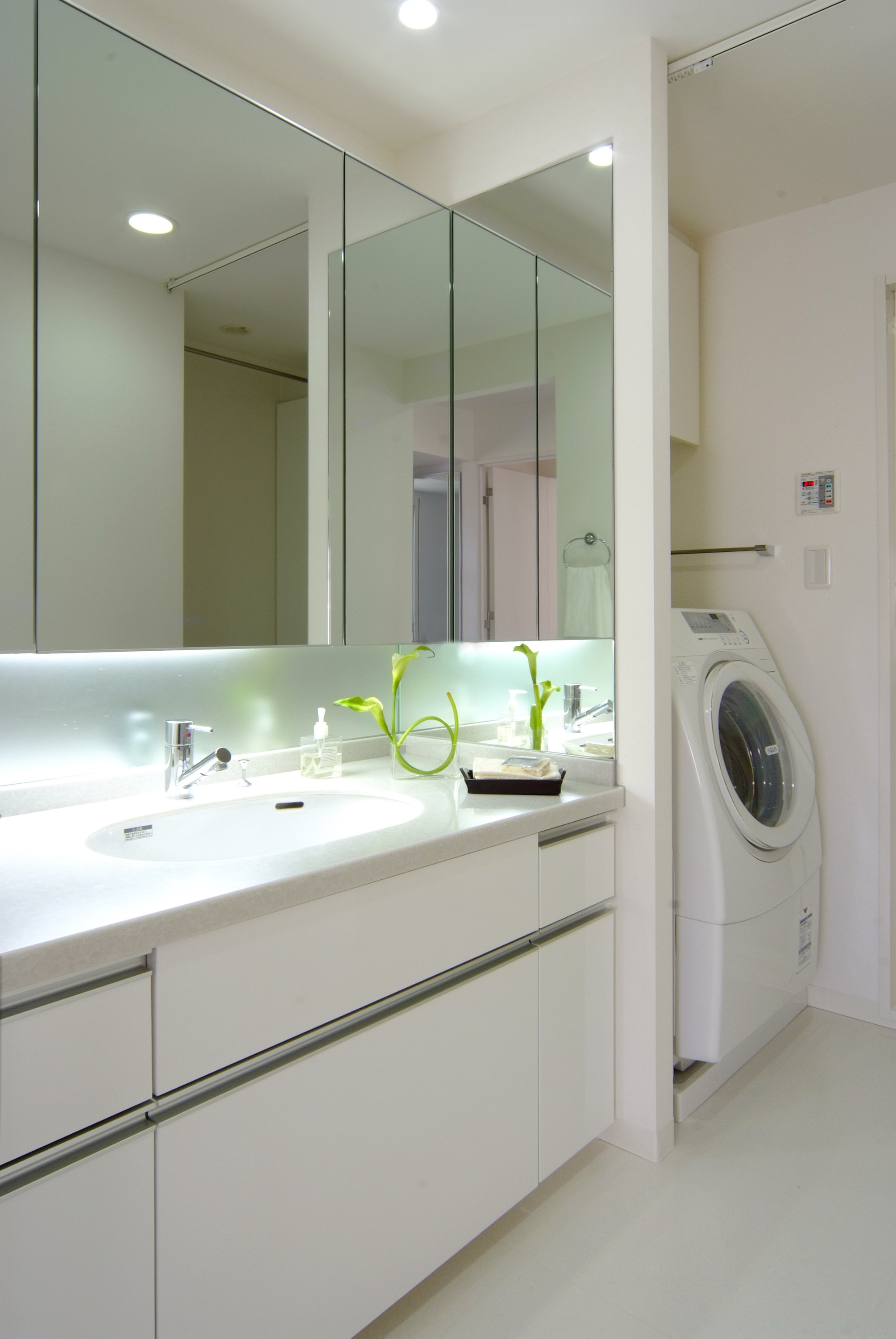 特にマンションの場合は,既製品の洗面台が合わないケースが多く、造り付けの洗面化粧台を数多く手掛けております。