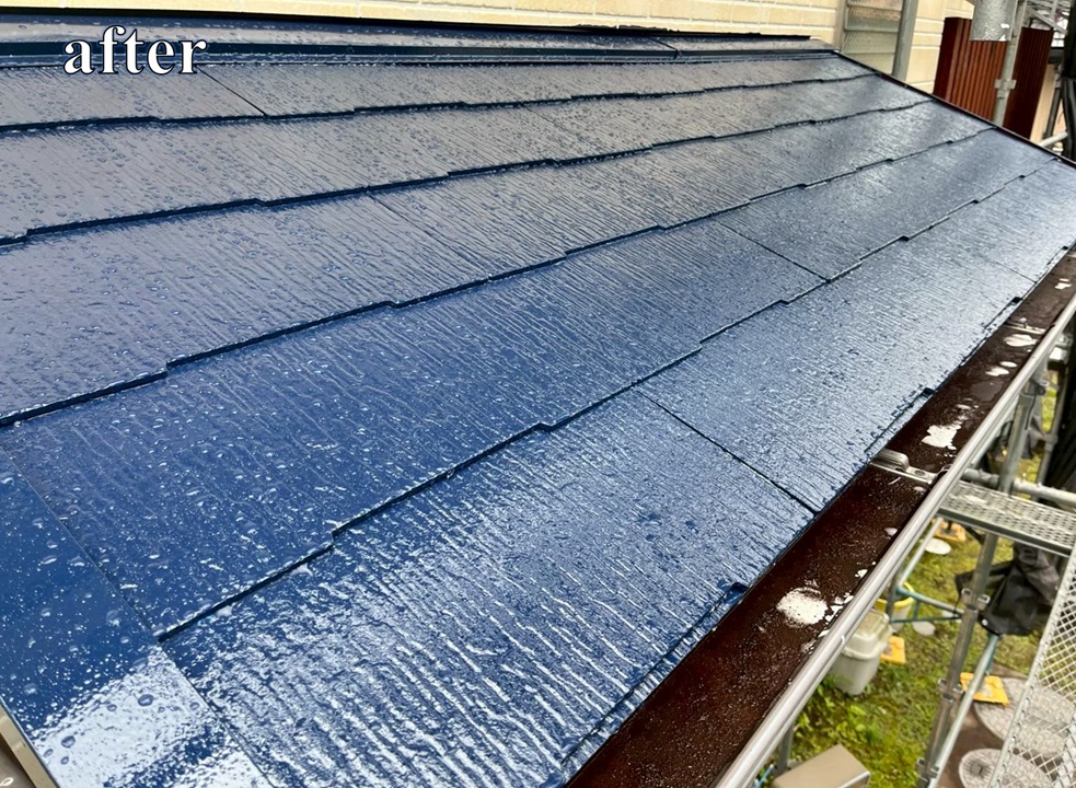 屋根は普段目にする機会が少ないため、気づかないうちに劣化が進行しているケースも少なくありません。現地調査の結果、下地の状態を確認したうえで、これ以上劣化を進行させないことを目的に、下地補強を行ったうえで高耐候性塗料による防水塗装をご提案しました。 耐久性を高めるだけでなく、屋根材本来の保護機能を回復させ、将来的なメンテナンス負担の軽減につながる施工内容です。