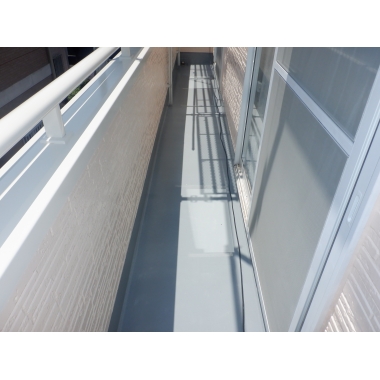 バルコニーは優れた耐水性で劣化防止し耐候性が良く優れた耐汚染性で美観保持する弾性トップ14で防水仕上げ
