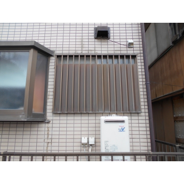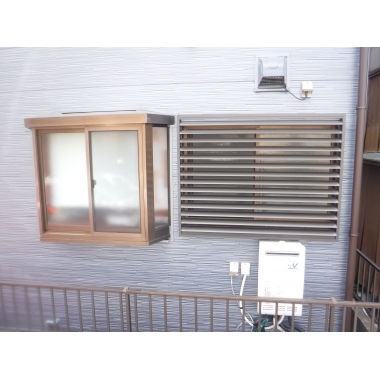 経年変化したマドミランと面格子撤去後に 目隠し可動ルーバーの取付工事