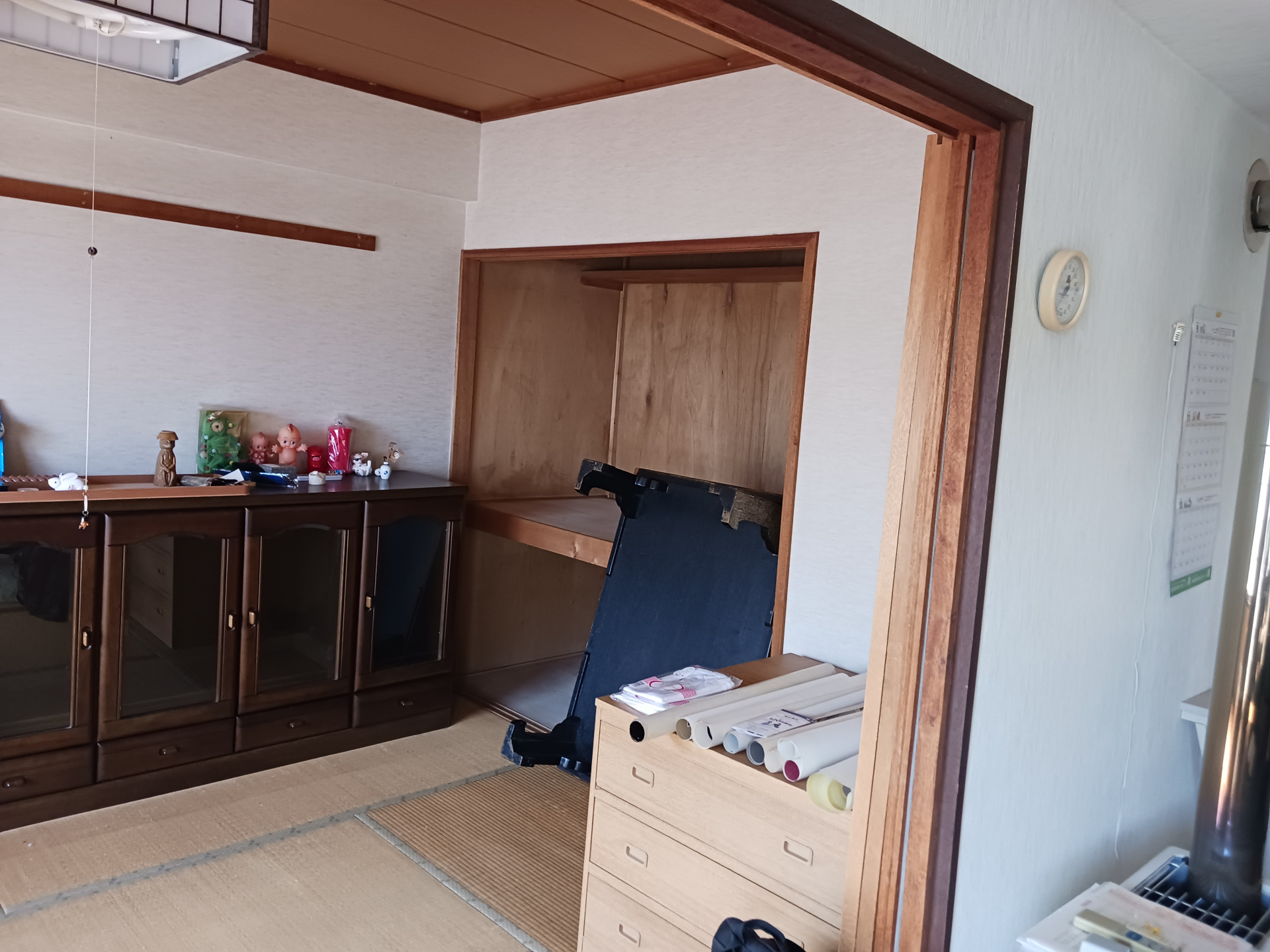 和室をフローリングにして壁を取り払い、ダイニングキッチンと一体化した広々リビングを実現。 各部屋との床の段差も無くし、バリアフリーの過ごしやすい家になりました。 また和室にあった押入はリビングで使いやすい奥行きの浅い収納に変更。 洋室側の押入はウォークインクローゼットに作りかえ、たっぷりの収納力を持たせました。