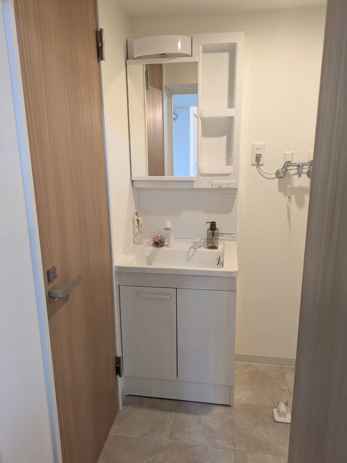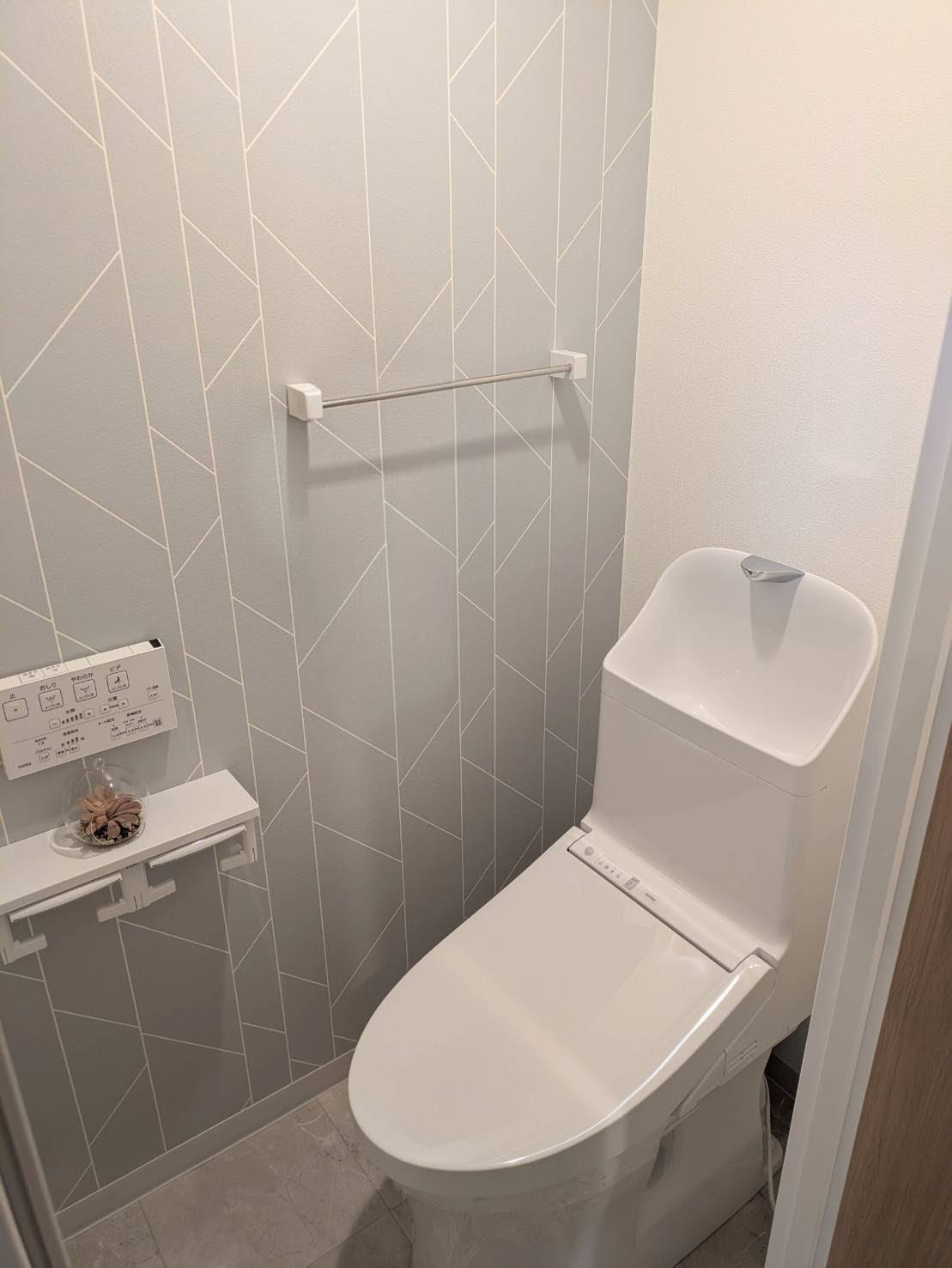 明るい木目の床とアクセントクロスで自然光が似合う北欧調の癒しリビングに。 各部屋の収納だけでなく玄関の収納も見直し、使い勝手の良いシューズボックスを設置しました。 どこか薄暗い雰囲気だった水回りは白をベースに明るい色でまとめ、清潔感のある空間になりました。
