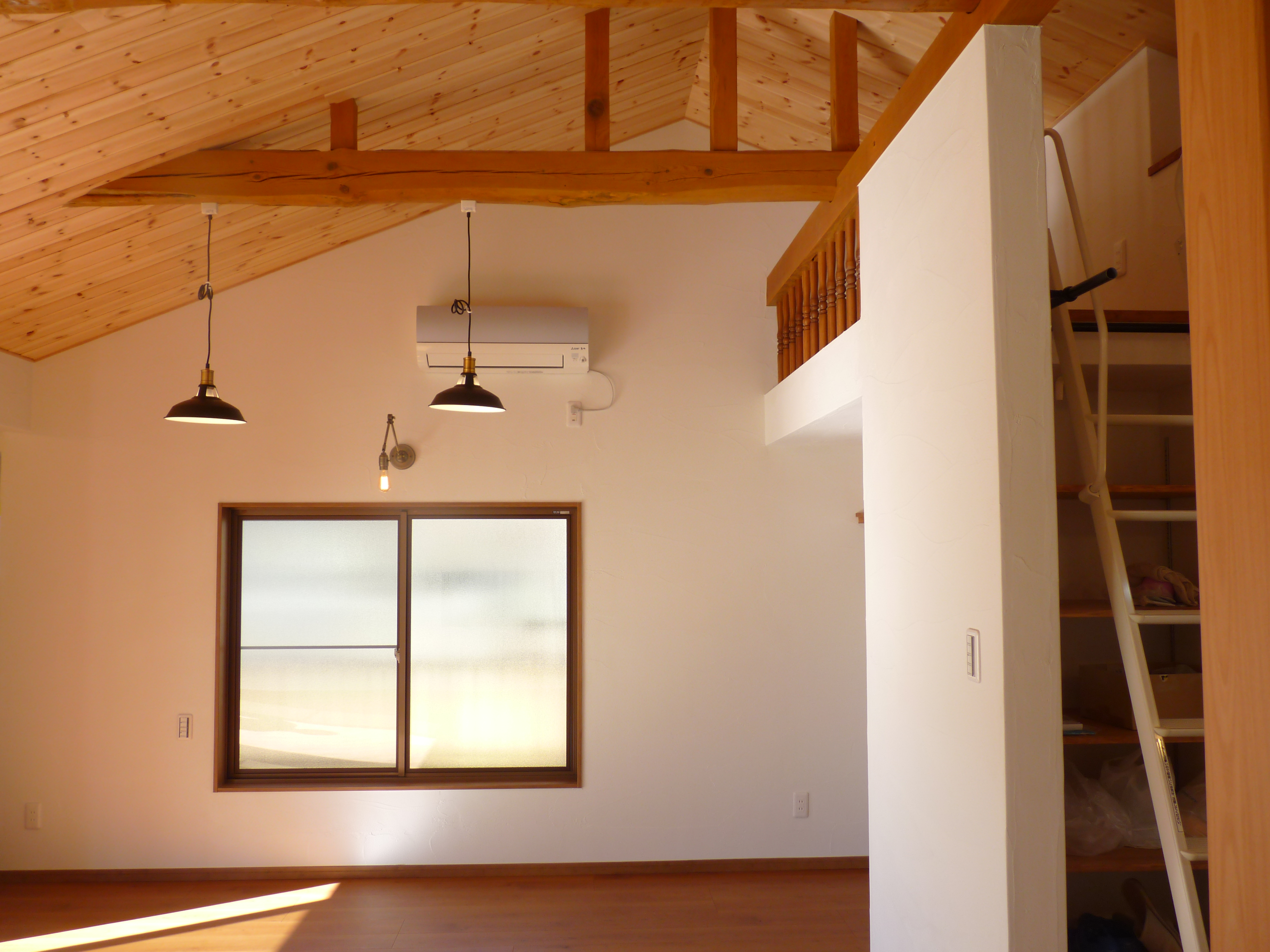 天井は、これまで隠れていた梁を活かした勾配天井に。