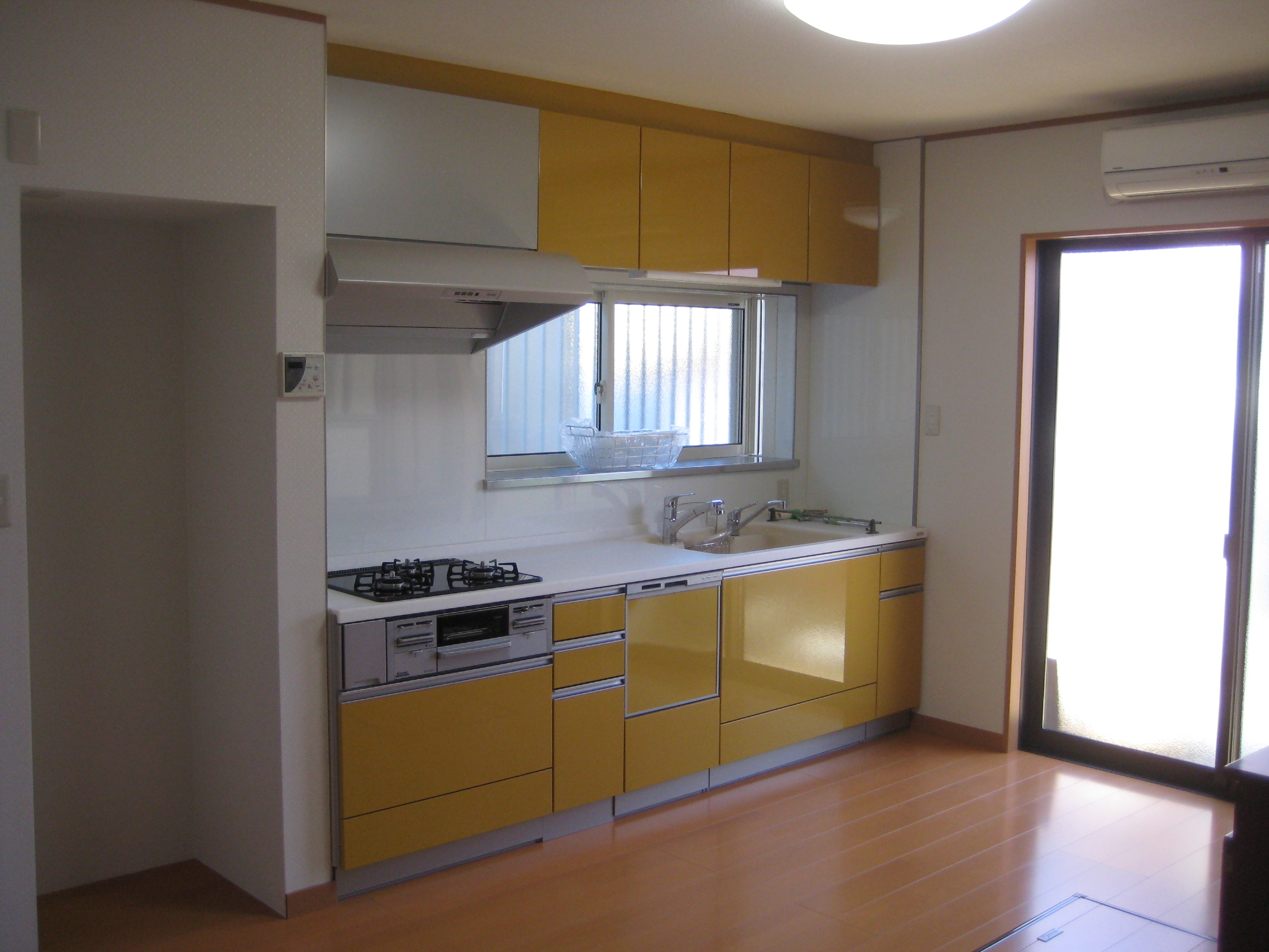 キッチンは、使い勝手の良いI型の壁付けタイプへ入れ替え。
