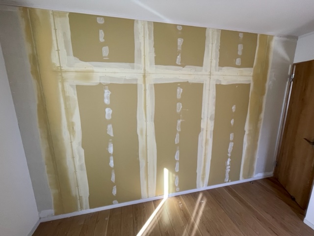 石膏ボードを貼り、壁紙が貼れる下処理をします