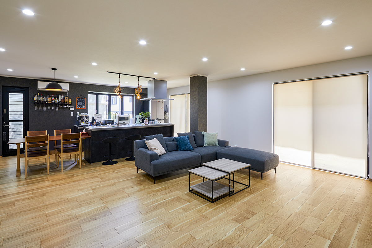 基本的なゾーニングは変更せず、各部屋の無駄なところは削ぎ落し、必要なところを拡張するなどしてストレスのかからないシンプルな間取り、形状にまとめました。お子様に目が届く広いLDKと家事・収納の効率化を図りました。
