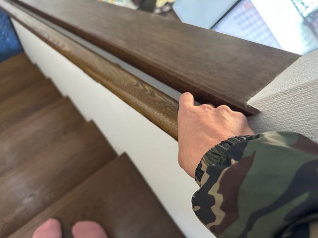 既存手摺の位置が高すぎて、指が入らず使用できない為したに移設し手がかけれる様にした。