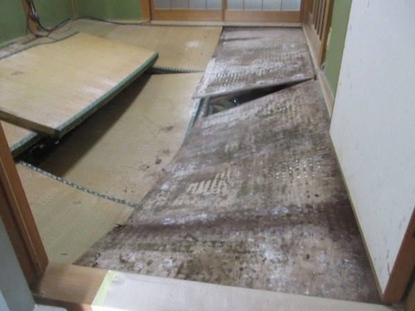土台 大引から作りなおして予算内に納めるため 畳ではなくパネコート貼りを提案させていただきました