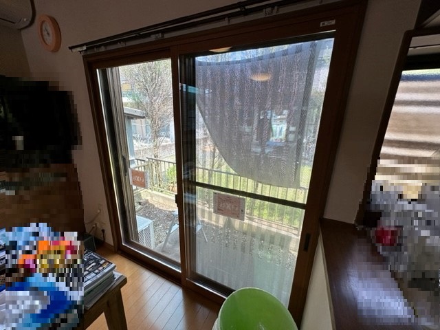 リビングの吐き出し窓部分の三方枠と床に枠を取り付け、内窓を設置しました。