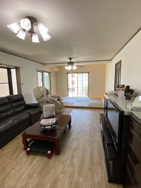 サクラの無垢床LDKは孫たちも快適 耐震補強で柱のない住まいを実現サンヨーリフォーム株式会社 -