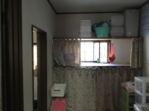洗面脱衣所の棚を改修したり、リビングに小上がりを造作しました。