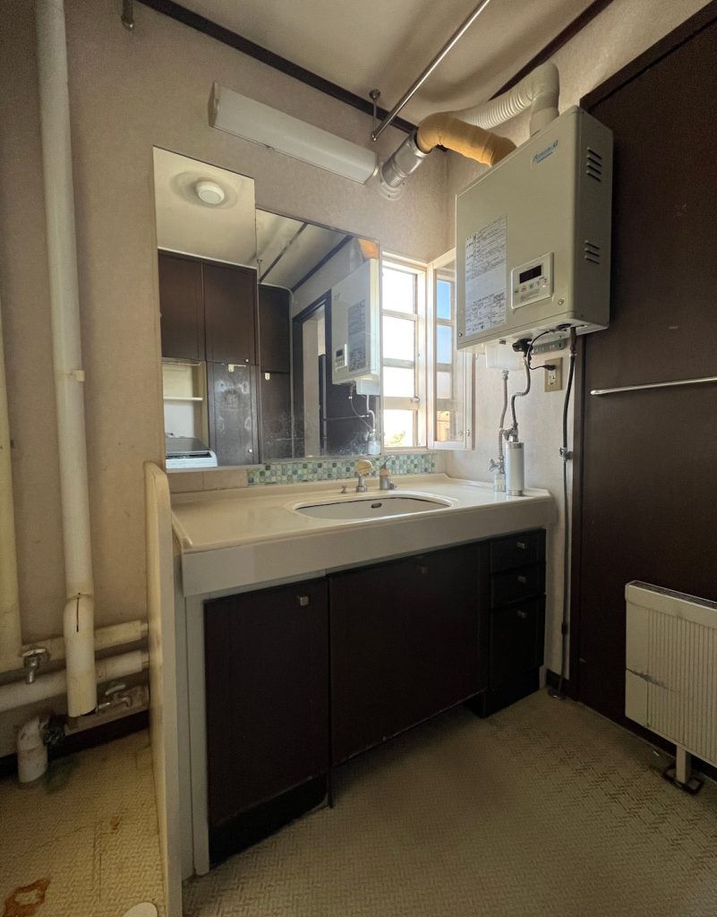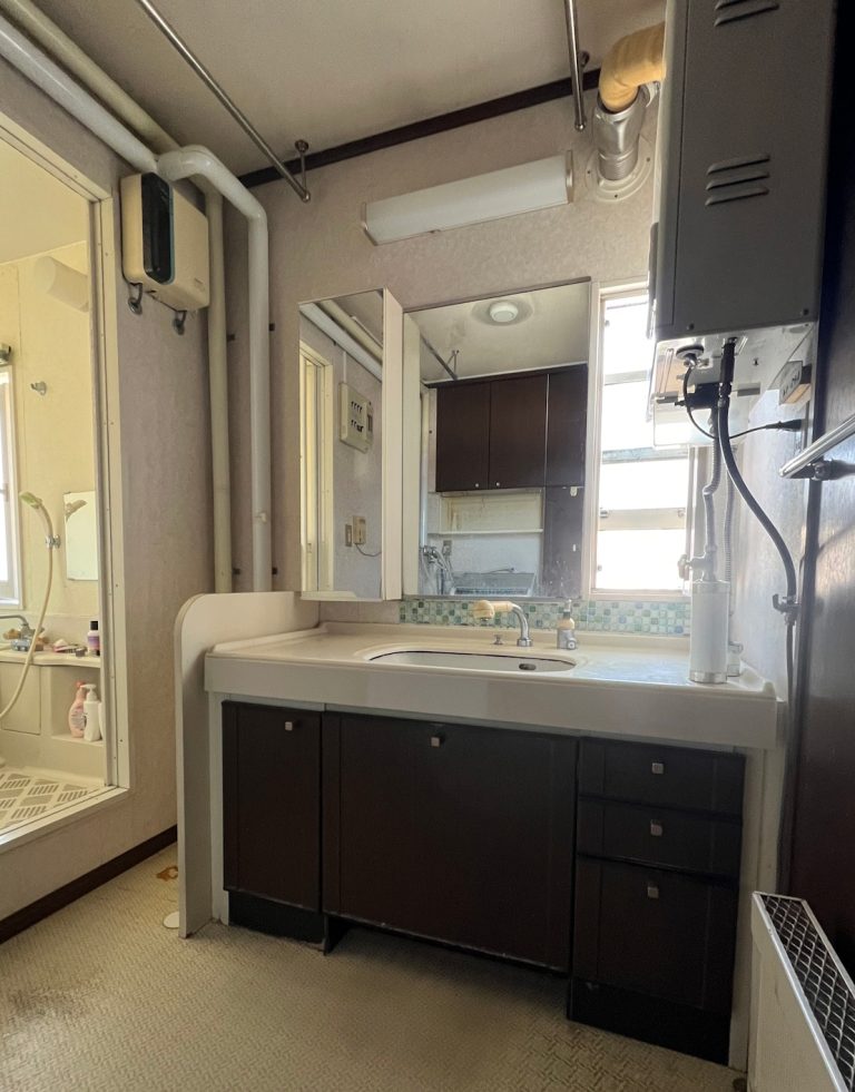 ・水漏れの原因となっていた銅管の緑青腐食をすべて取り除き、耐久性の高い配管へ更新することで、今後の安心につながる施工を実施しました。 ・洗面台の縁裏に汚れが溜まりにくいフラット設計を最大限活かすため、壁・床・クロスとの取り合いを丁寧に調整し、美しく清掃性の高い仕上がりを実現しました。 ・収納力が大幅に向上するよう内部の配置を最適化し、日用品がすべて収まるよう細部までプランニングしました。 ・空いたスペースに設けた猫用スペースは、T様の生活動線と愛猫の習性を考慮し、安全性と使いやすさを両立した造作になるよう配慮しました。