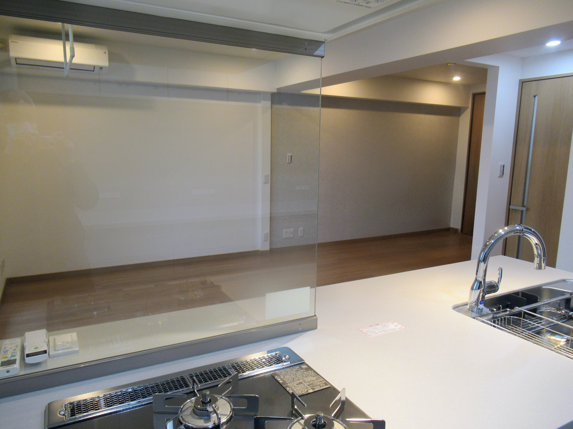 リビングの隣にあった和室の壁を取り除き洋室へ変更したため、広々としたリビングを確保。お客様ご希望の対面キッチンに変更することが出来ました。