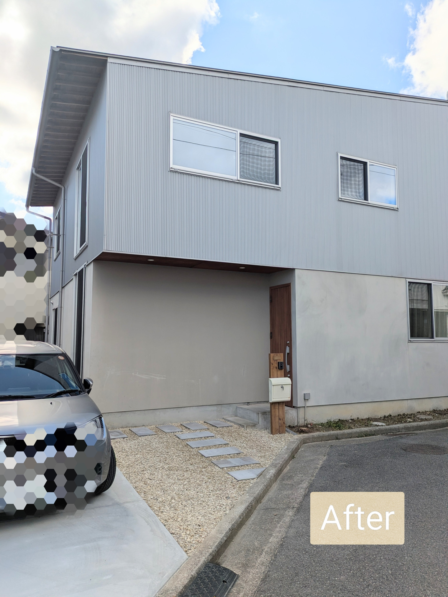 屋根・外壁塗装、雨樋の交換、一部腐食した木部の交換、カーポート、ポスト等々。 外観のイメージチェンジ。