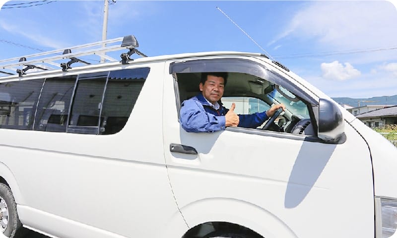 お客様にご安心いただくために、各拠点を中心とした移動時間60分圏内を施工エリアとする「アフター60」という体制をとっており、お困りの際にすぐに駆け付けられるようにしています。