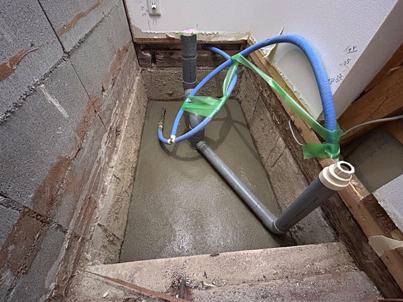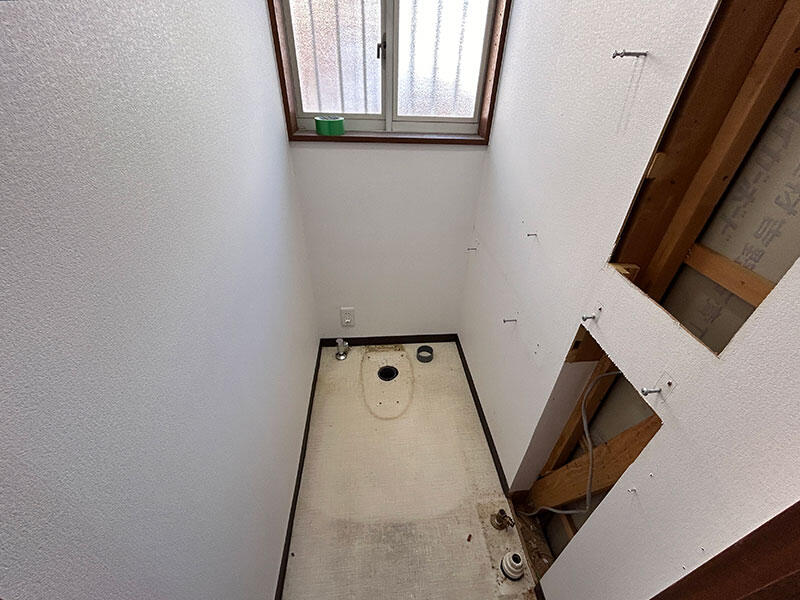 トイレの床下が土だったため、将来的なシロアリ被害や湿気によるカビの発生が懸念されました。そこで、防湿・防蟻対策としてコンクリートの打設をご提案しました。あわせて内装工事もご希望いただいていたため、まとめてお任せいただくことでコスト面でもメリットがあるとご説明し、廊下の内装もあわせて施工いたしました。