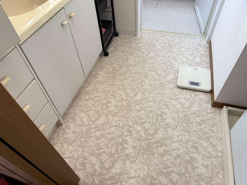 浴室暖房換気扇や洗面所暖房はTOTOの商品をご提案しました。また、ご使用いただいていたクッションフロアは表面がさらさらした種類だったたため、凹凸があり滑りにくい種類をご提案しました。
