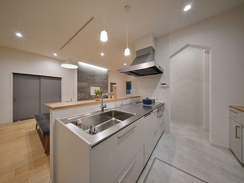 LDKをオープンにして、コミュニケーションの取りやすい環境に仕上がりました。 白を基調として、クリアなイメージになっております。