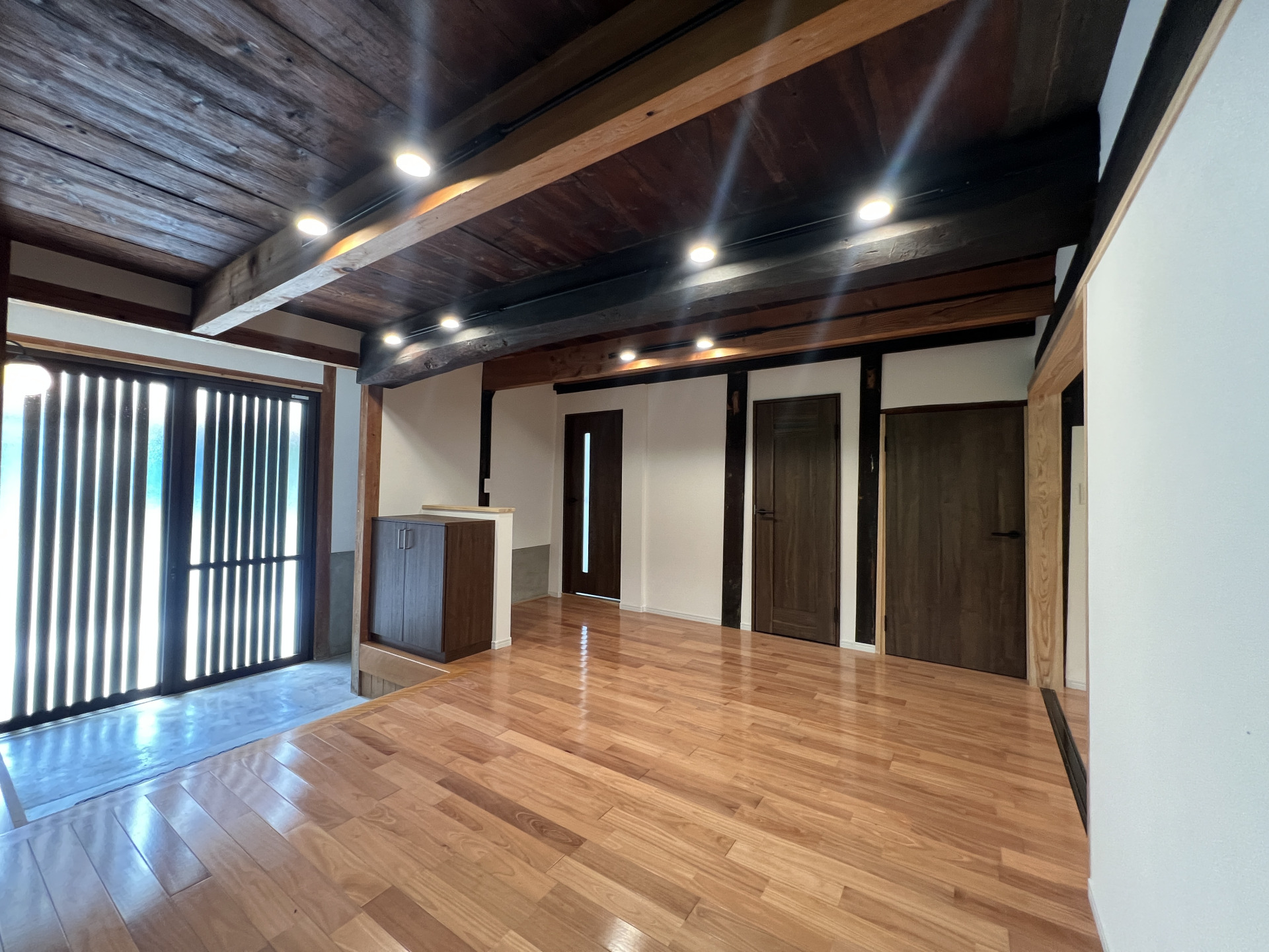 昔の趣も感じられ、ほっとする心地よい空間になるように、もともとあった梁を活かした解放感たっぷりのLDKを提案しました。