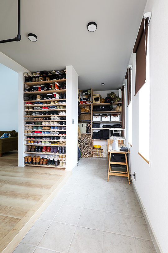 アウトドア用品を玄関土間に収納 建具は最小限でも断熱施工で快適な平屋リフォーム