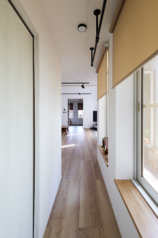 日当たりがよい廊下にも洗濯を干せるようにアイアンフレームを設置しました。
