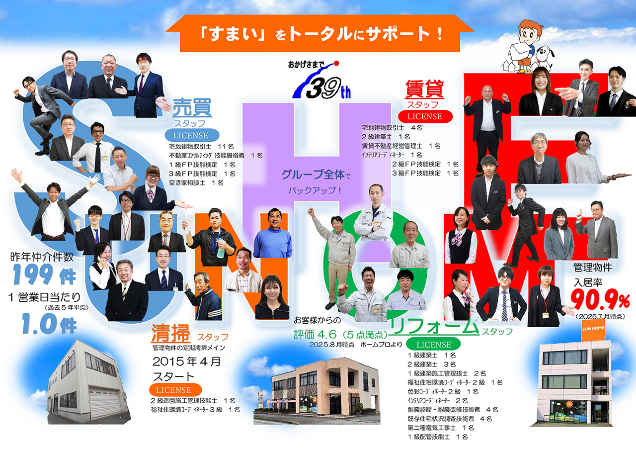リフォームアドバイザーの人柄・対応力に自信を持っている他、自社職人による自社施工に定評があり、「仕上げがすばらしい」「挨拶を気持ちよくしてくれる」などの評価をいただいております。「お客様と誠実に向き合い、生涯のお付き合いをさせていただく」という気持ちを社員全員が常に心にもち、お客様にとって最高の暮らしを提供いたします。