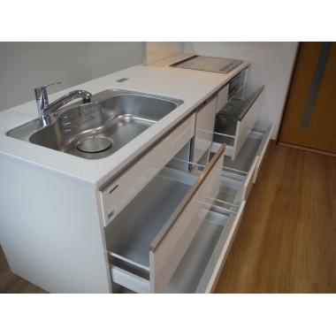 「将来お料理教室をやりたい!」お母様のご要望がありフラット対面タイプのキッチンを採用頂きました。