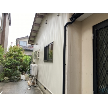 築年数相当の外壁だった為劣化があったことと耐震補強工事が全て中から出来なかったことからリフォーム範囲のみの外壁張替をご提案。費用的にも低コストの角波板金張りでご提案しました。