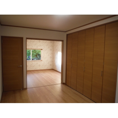 2部屋続きの洋室は使い勝手によって引き戸で仕切れるようにしました。壁面のアクセントクロスもおしゃれに!収納にこだわったお部屋は大容量のクローゼットを新設。収納力は抜群で部屋を広々と使えます。