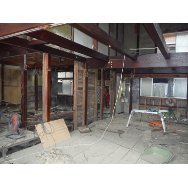古民家ならではの町屋づくりで、お隣同士の家屋が連なって建てられている造りとなっておりました。今回のお客様は、そのうちの別々に使われていた3件をひとつにつなげ、より暮らしやすく快適な空間として生まれ変わらせたいとご希望され、フルリフォームのご相談をいただきました。