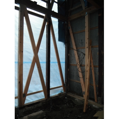 耐震補強リフォームとして、まず真っ先にポイントとなるのが「壁」です。 耐震補強設計に基づき、筋交いや補強金物をお家全体にバランス良く配置することによって耐震強度を高めていきます!