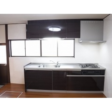 【リフォーム内容詳細】 天井塗装、壁クロス貼、床フロアタイル貼、システムキッチン新設、ビルトインガスコンロ新設、照明器具取替